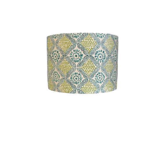 Raspberry Leaf Interiors Handmade Fabric Lampshade 30cm Drum Kemble Maize Block Print