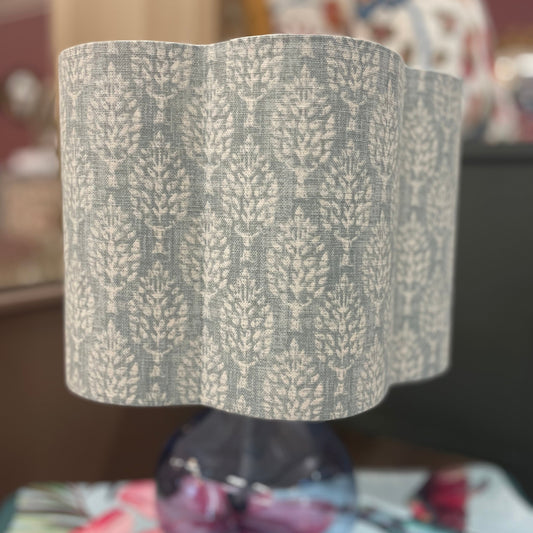 Raspberry Leaf Interiors Handmade Scalloped Blue Lampshade Kemble Haze