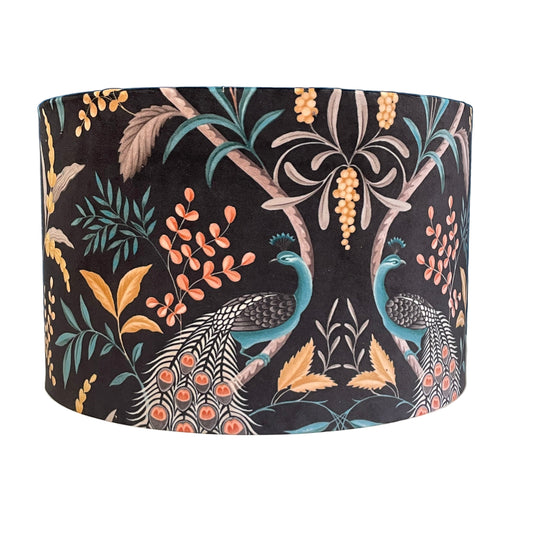 Handmade Lampshade, 40cm Drum, Parvani Onyx Fabric Black Velvet Peacock Shade