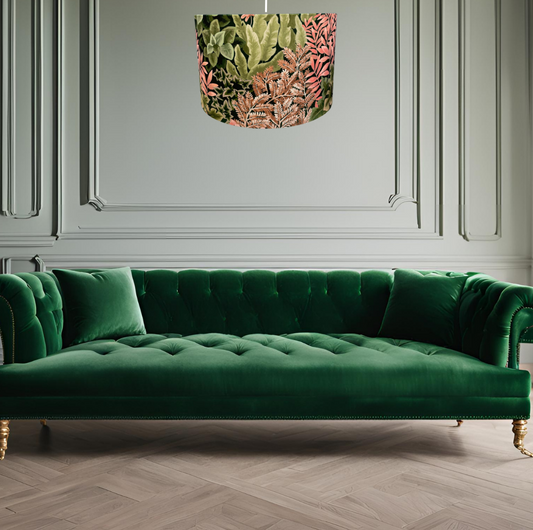 Raspberry Leaf Interiors Handmade Lampshade 40cm Drum Double Sided Oslo Fern and Greenery Wisteria