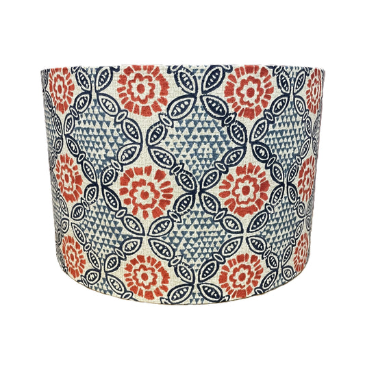 Raspberry Leaf Interiors Handmade Lampshade 40cm Drum Oslo Oxford and Santa Maria Indigo