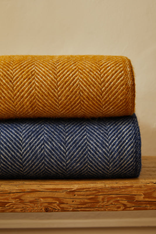 Tweedmill Fishbone Pure New Wool Throw: English Mustard Herringbone