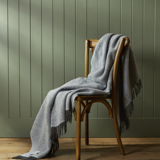 Adam Curtis Muckle Flugga Real Shetland Wool Grey Herringbone Throw