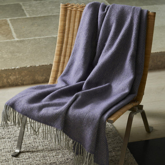 Tweedmill Lifestyle Herringbone Wool Throw Blanket Lavender