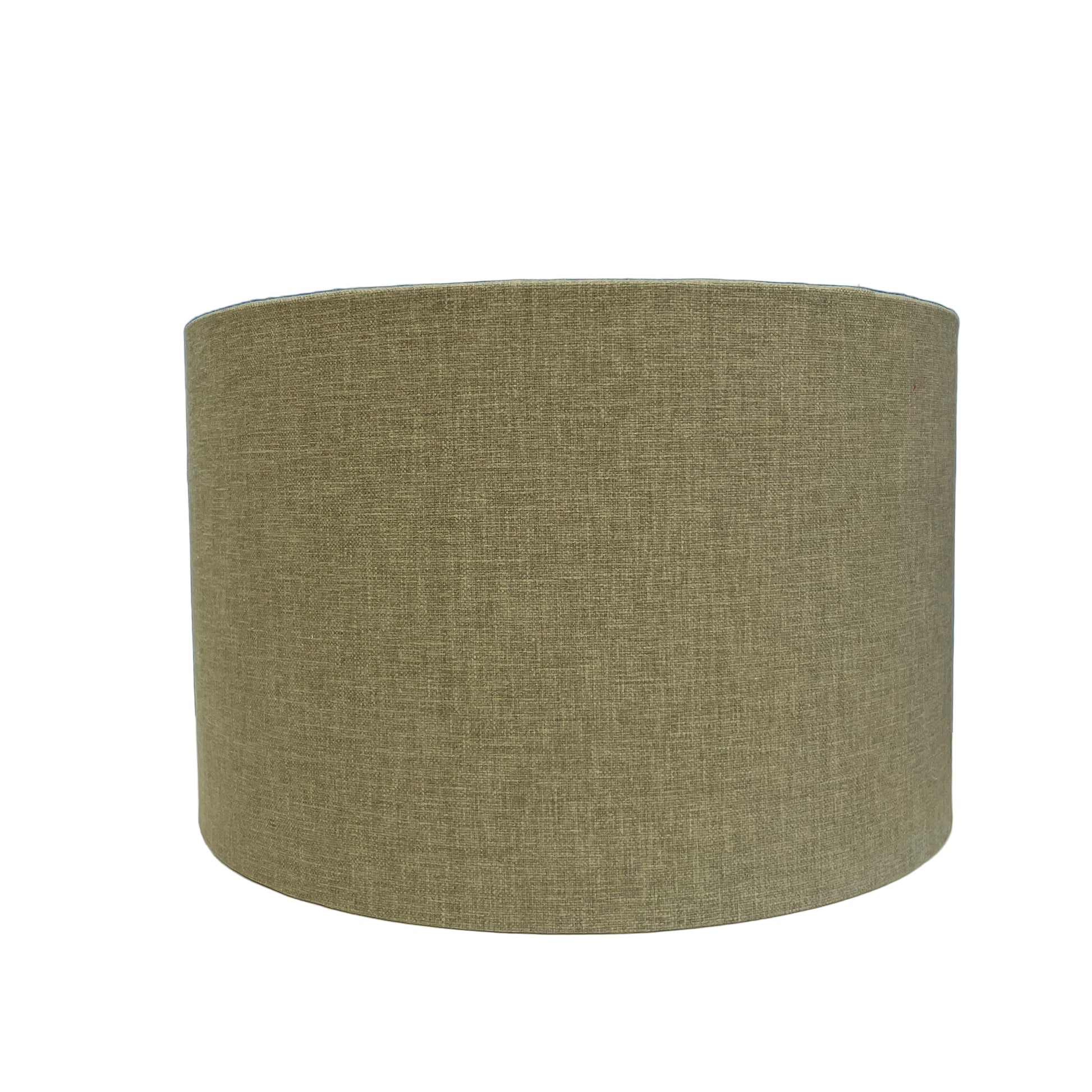 Raspberry Leaf Interiors 40cm handmade Lampshade made with fabric on the inside and outside of the shade. On the inside is a muted floral print of soft purples and leafy greens which provides a stunning contrast to the deep mossy green fabric on the outside. This cylinder lamp shade is designed to easily fit a ceiling light fitting and measures 40cm x 20cm High.