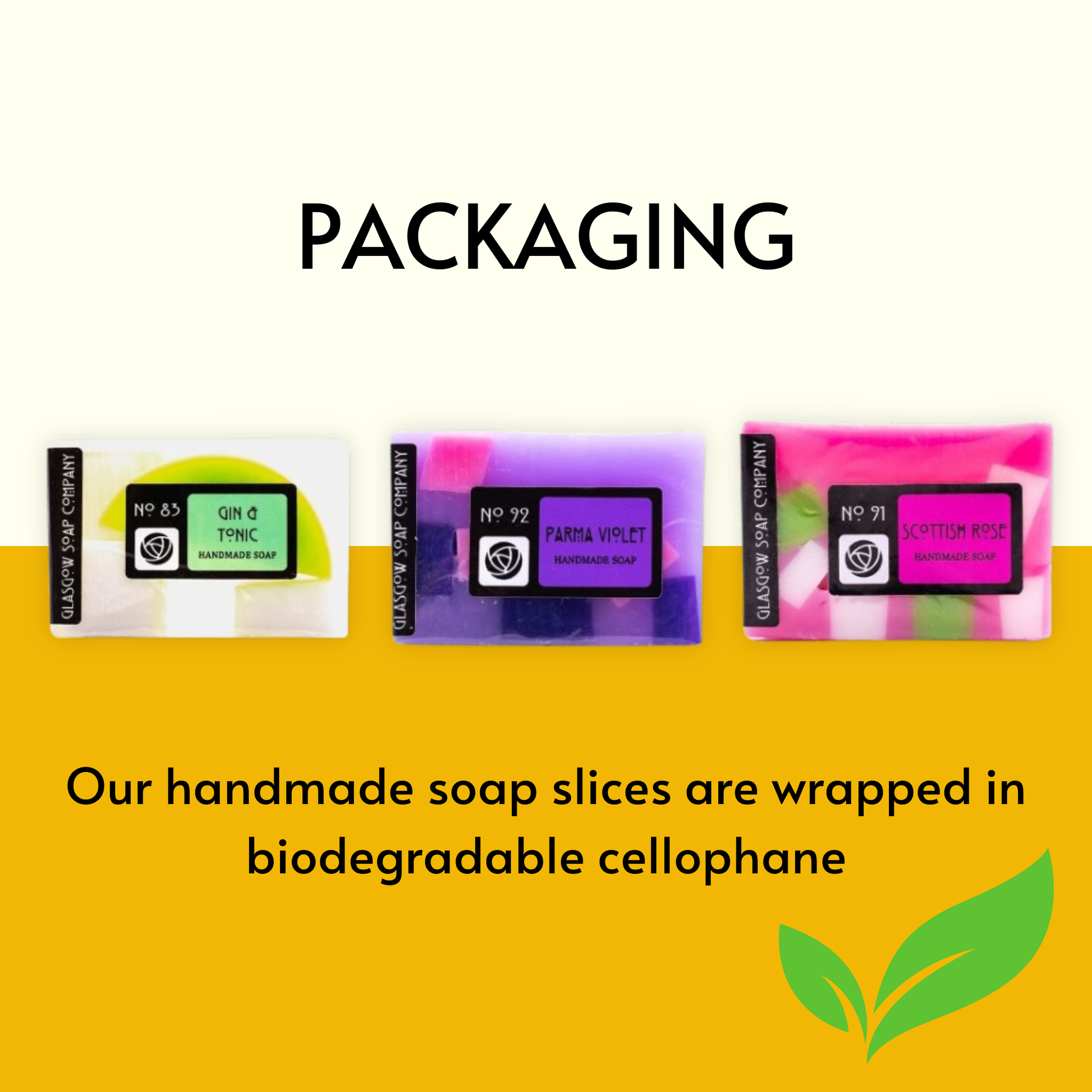 This rhubarb and ginger soap slice has a fresh and tart rhubarb fragrance mixed with a spicy hit of ginger essential oil. 120g. Handmade by the Glasgow Soap Company in small batches, their soap contains no SLS or parabens and is suitable for sensitive skin and is vegan friendly!