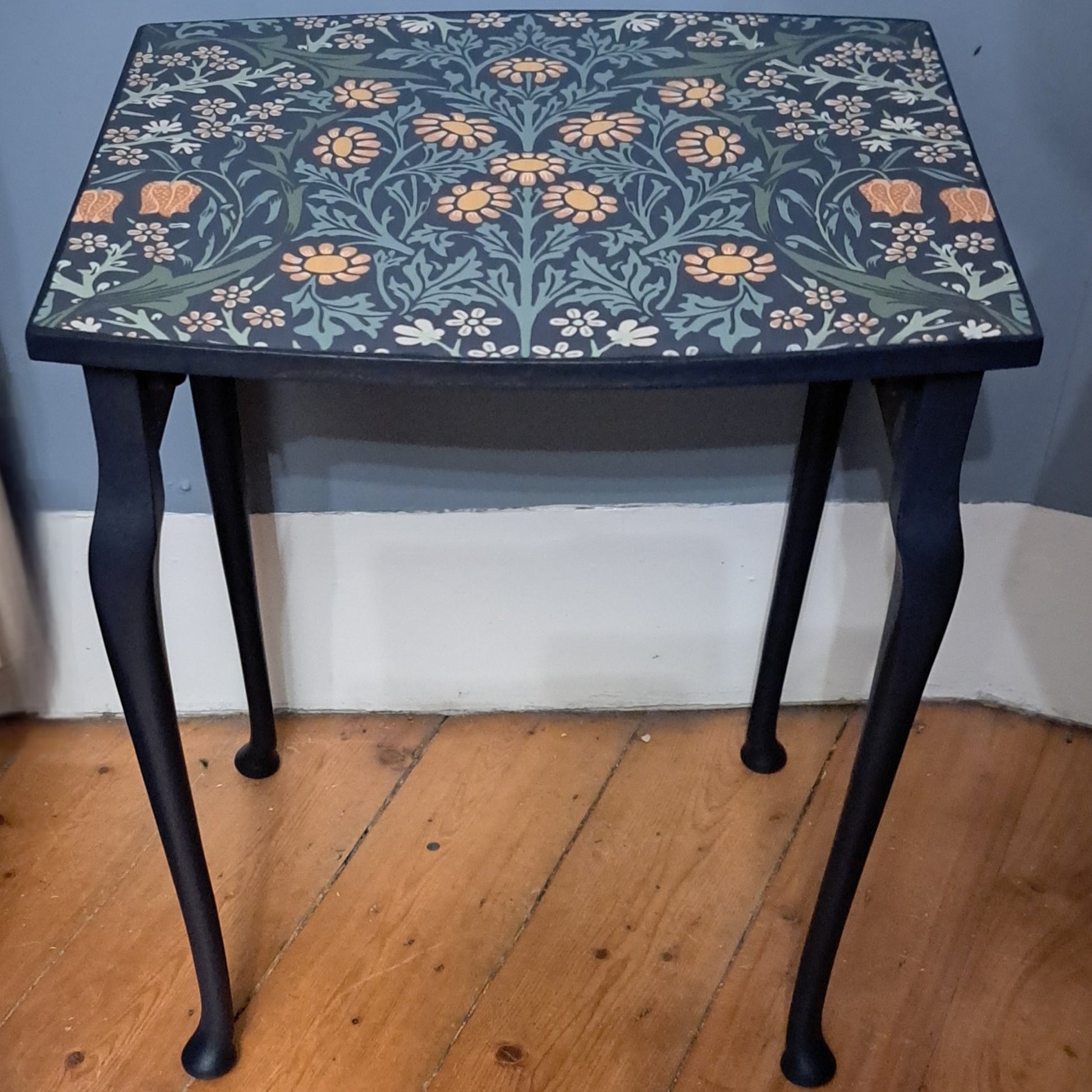 Upcycled Nest of Three Tables William Morris Blackthorn Blue